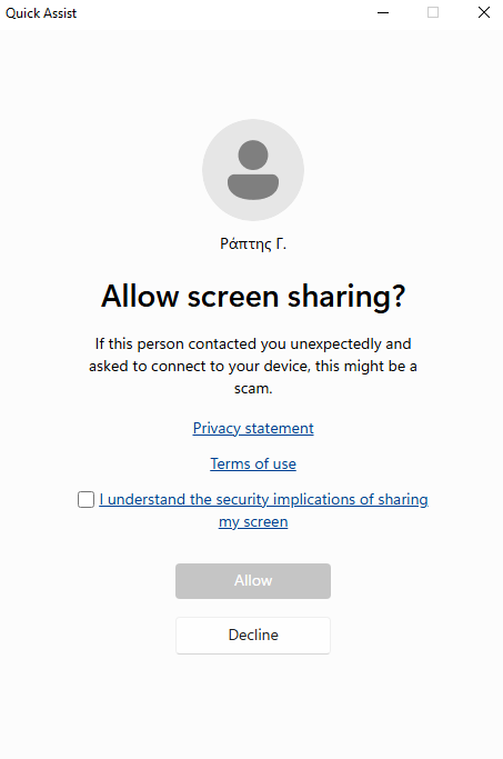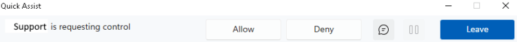 Μόλις ο τεχνικός μπεί θα εμφανιστεί στο πάνω μέρος της οθόνης το παράθυρο του quick assist.